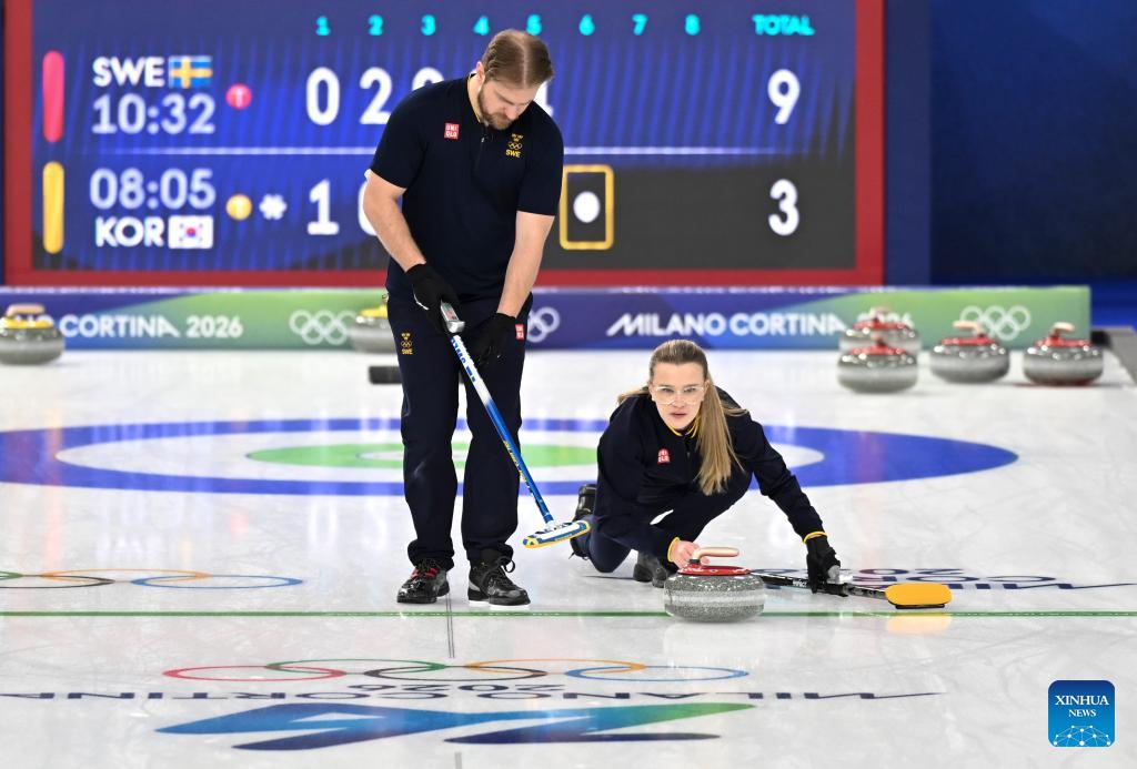 CORTINA D'AMPEZZO, Italy, Feb. 4 (Xinhua) -- Britain, Sweden, Canada and Switzerland secured opening victories as mixed doubles curling competition got underway on Wednesday, two days ahead of the official opening of the Milan-Cortina 2026 Olympic Winter Games.