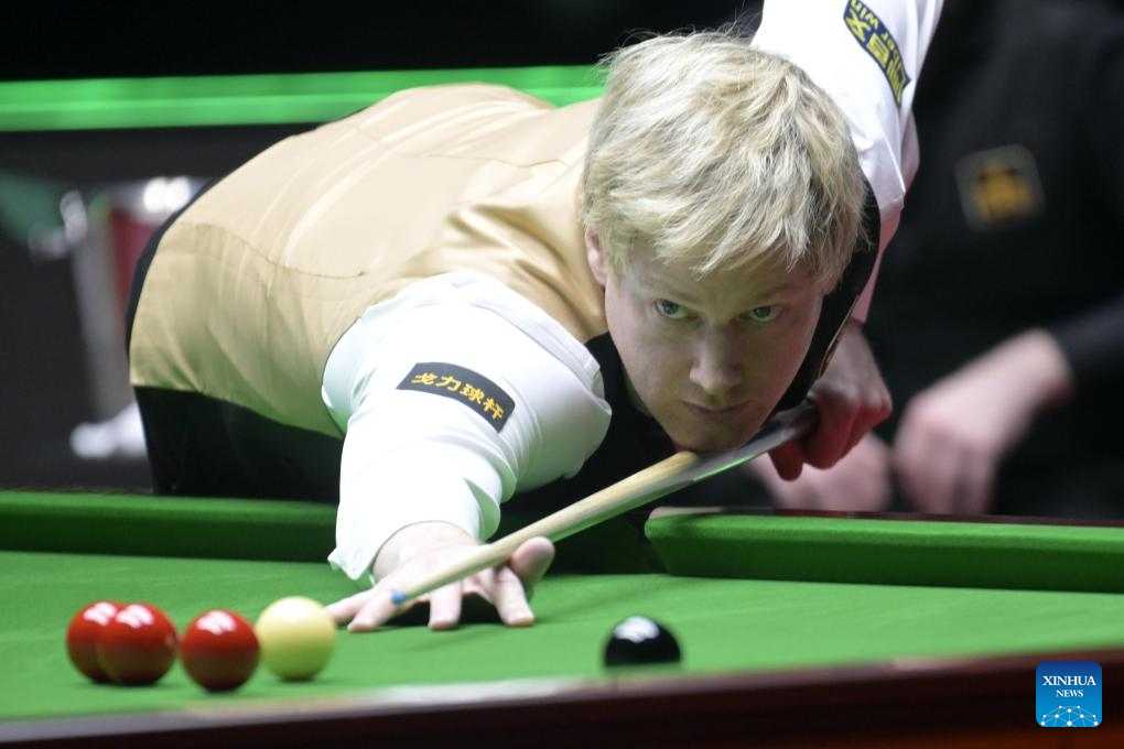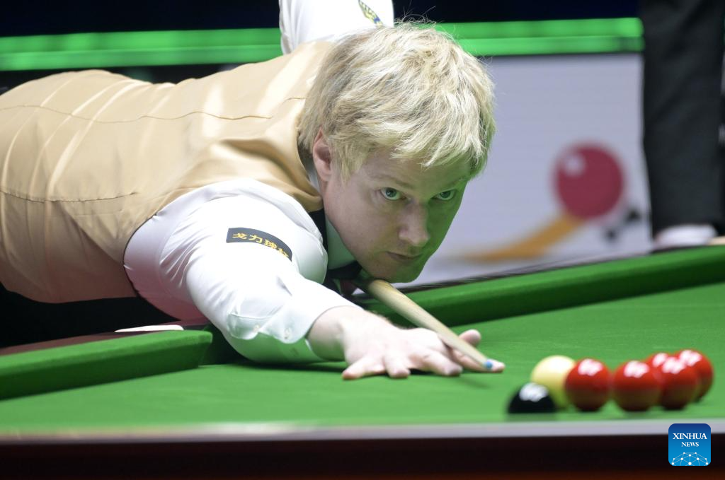 Neil Robertson comeptes during the first round match between Neil Robertson of Australia and Jak Jones of Wales at the Snooker World Grand Prix 2026 in Hong Kong, south China, Feb. 4, 2026. (Xinhua/Lo Ping Fai)