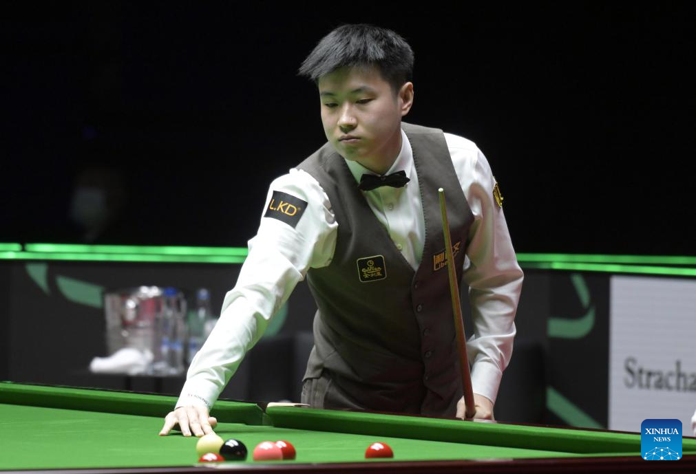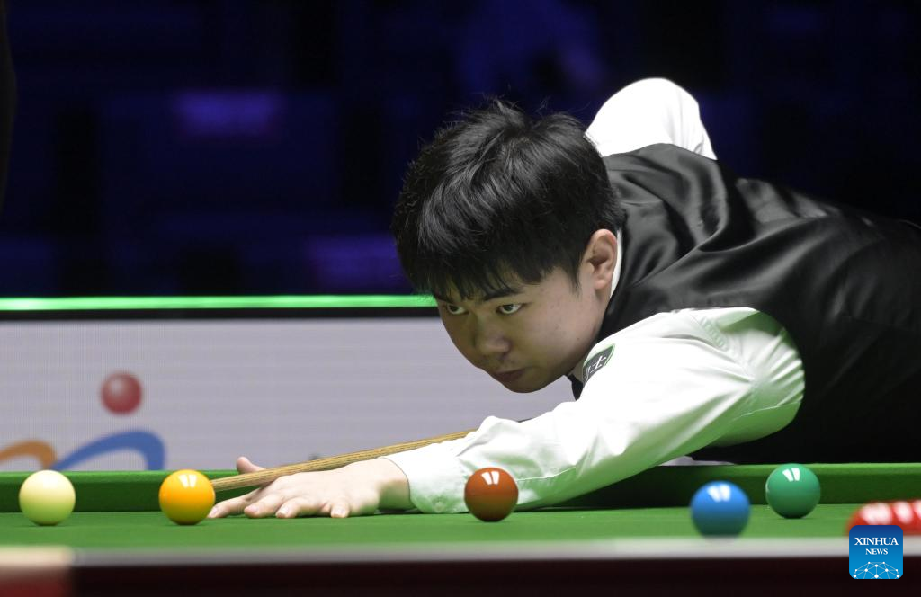 Yuan Sijun competes during the first round match between Yuan Sijun of China and Judd Trump of England at the Snooker World Grand Prix 2026 in Hong Kong, south China, Feb. 4, 2026. (Xinhua/Lo Ping Fai)