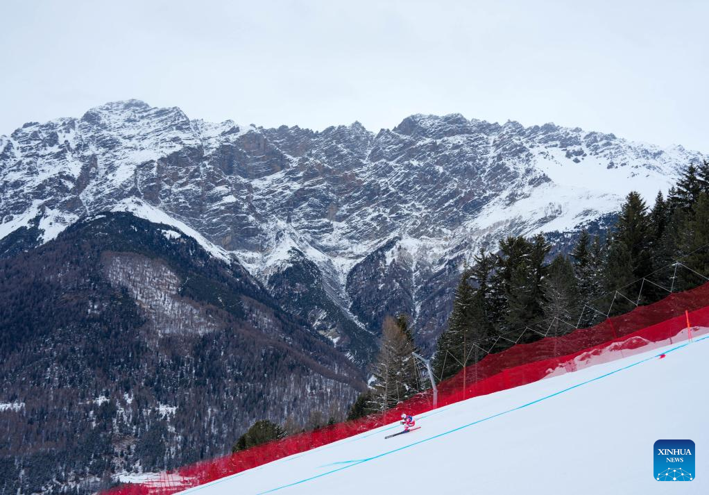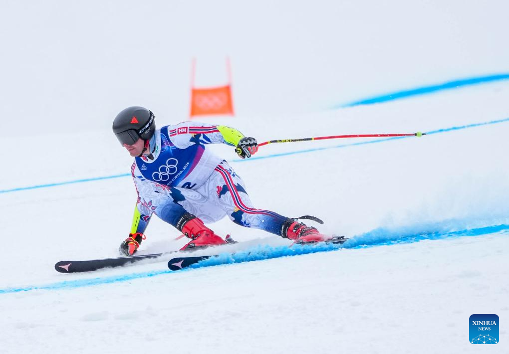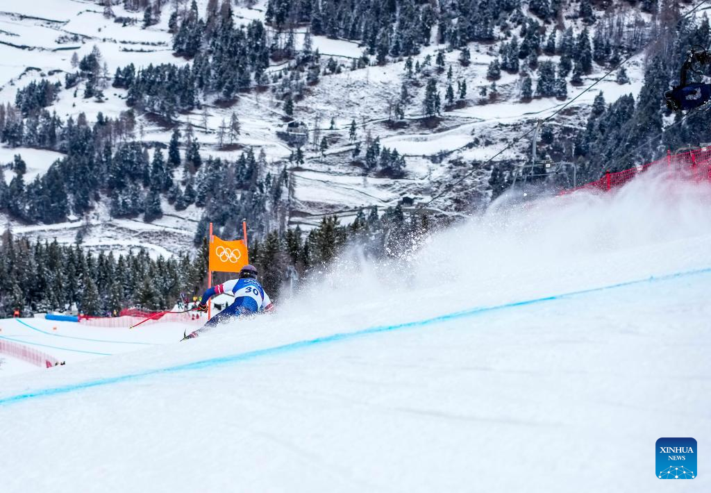 Niels Hintermann of Switzerland takes part in the alpine skiing men's downhill first official training ahead of the 2026 Milan-Cortina Winter Olympics, in Bormio, Italy, Feb. 4, 2026. (Xinhua/Yan Linyun)