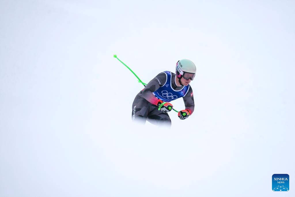 Lukas Feurstein of Austria takes part in the alpine skiing men's downhill first official training ahead of the 2026 Milan-Cortina Winter Olympics, in Bormio, Italy, Feb. 4, 2026. (Xinhua/Hu Huhu)