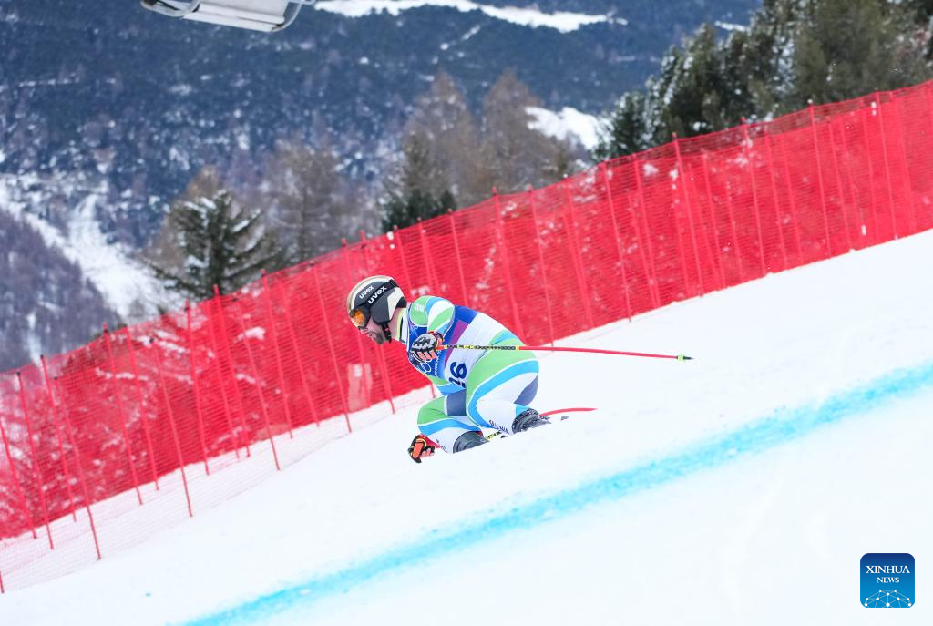 Martin Cater of Slovenia takes part in the alpine skiing men's downhill first official training ahead of the 2026 Milan-Cortina Winter Olympics, in Bormio, Italy, Feb. 4, 2026. (Xinhua/Yan Linyun)