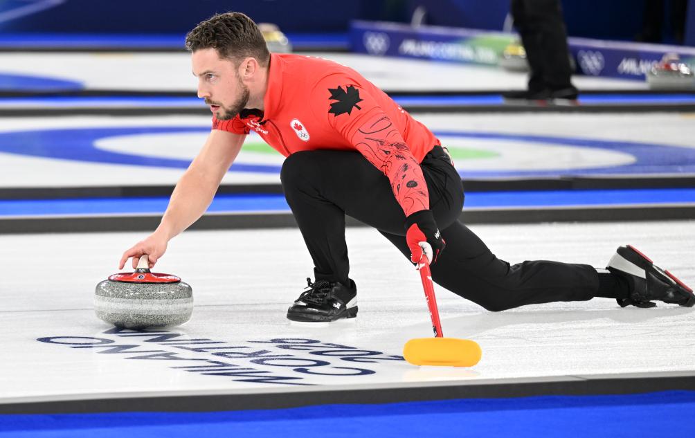 Brett Gallant of Canada competes during the curling mixed doubles round robin session 1 match between Canada and the Czech Republic of the 2026 Milan-Cortina Winter Olympics in Cortina D'Ampezzo, Italy, February 4, 2026. (Photo: Xinhua)