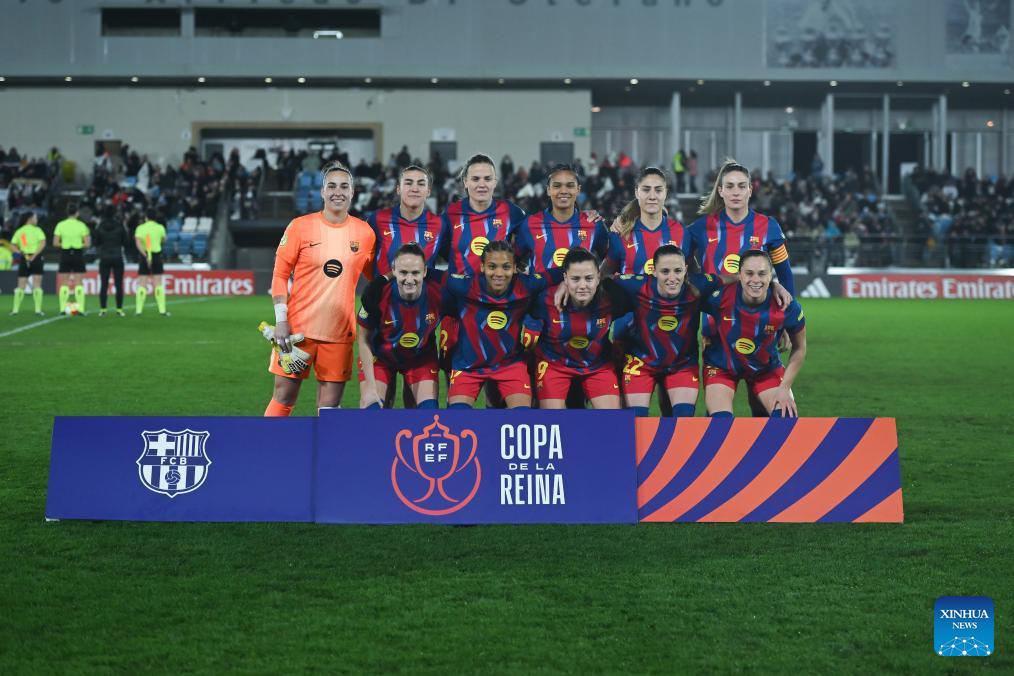 Players of Barcelona pose for photos before the Copa de la Reina match between Real Madrid and FC Barcelona in Madrid, Spain, on Feb. 5, 2026. (Photo by Gustavo Valiente/Xinhua)