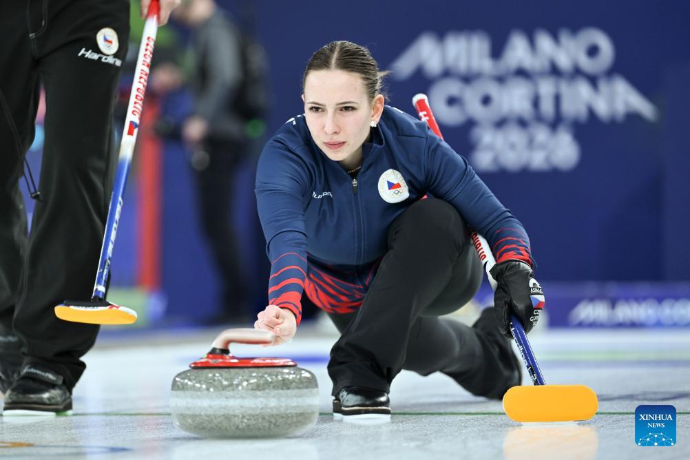 Julie Zelingrova of the Czech Republic competes during the curling mixed doubles round robin session 4 match between the Czech Republic and Britain of the 2026 Milan-Cortina Winter Olympics in Cortina D'Ampezzo, Italy, Feb. 5, 2026. (Photo: Xinhua/Lian Yi)