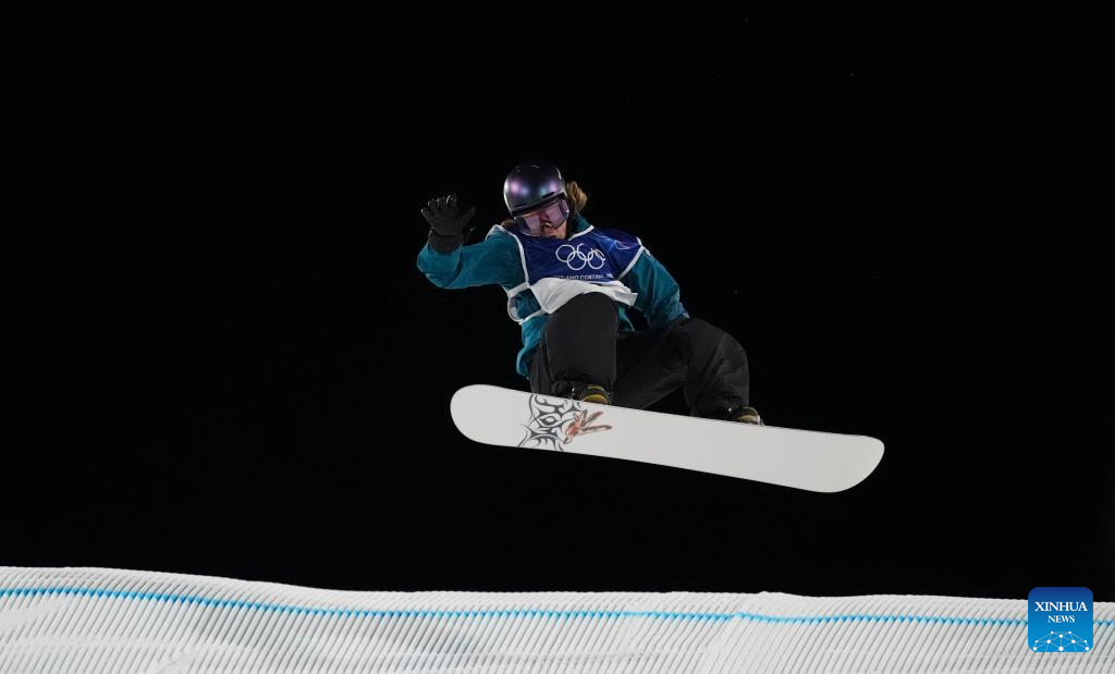 Eli Bouchard of Canada competes during the Snowboard Men's Big Air qualification of the Milan-Cortina 2026 Olympic Winter Games in Livigno, Italy, Feb. 5, 2026. (Xinhua/Xia Yifang)