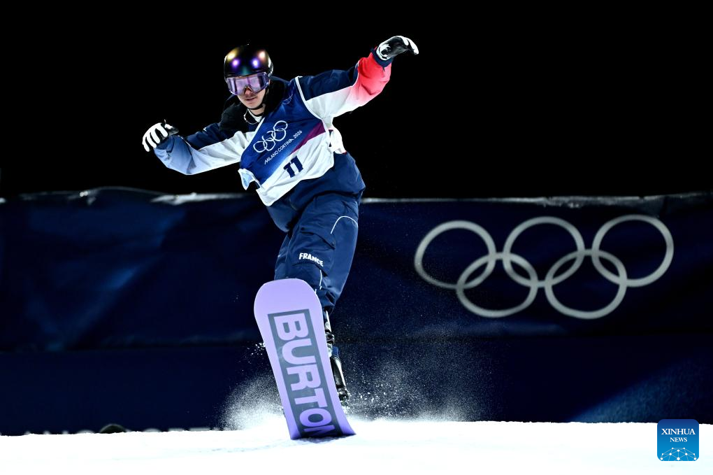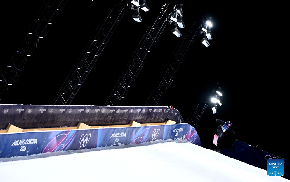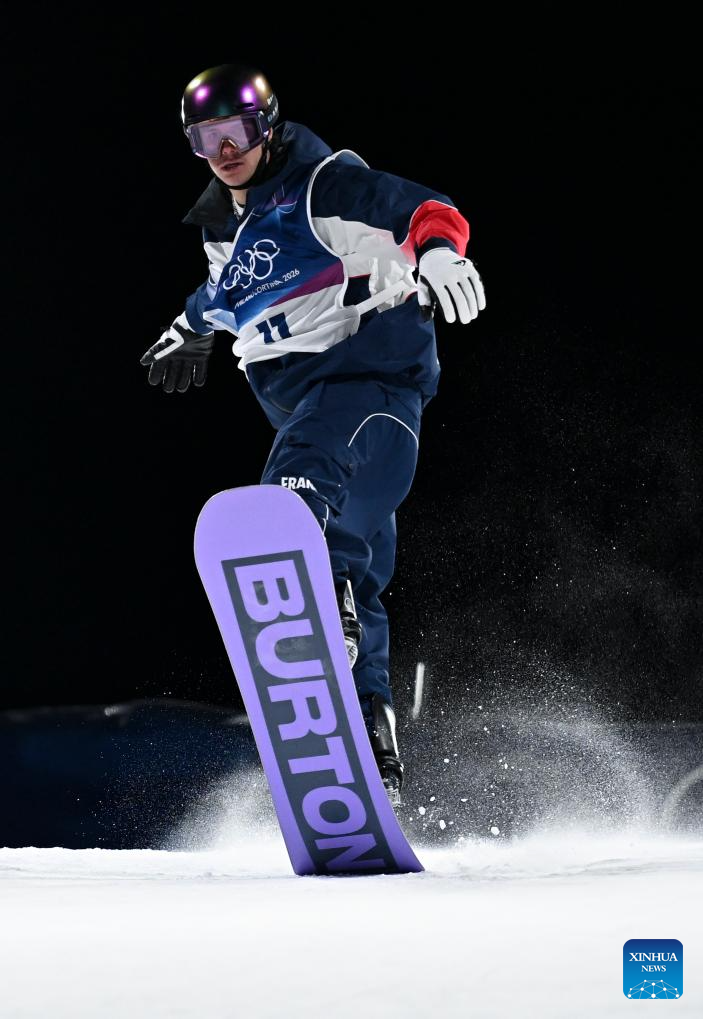 Romain Allemand of France competes during the Snowboard Men's Big Air qualification of the Milan-Cortina 2026 Olympic Winter Games in Livigno, Italy, Feb. 5, 2026. (Xinhua/Zhang Hongxiang)