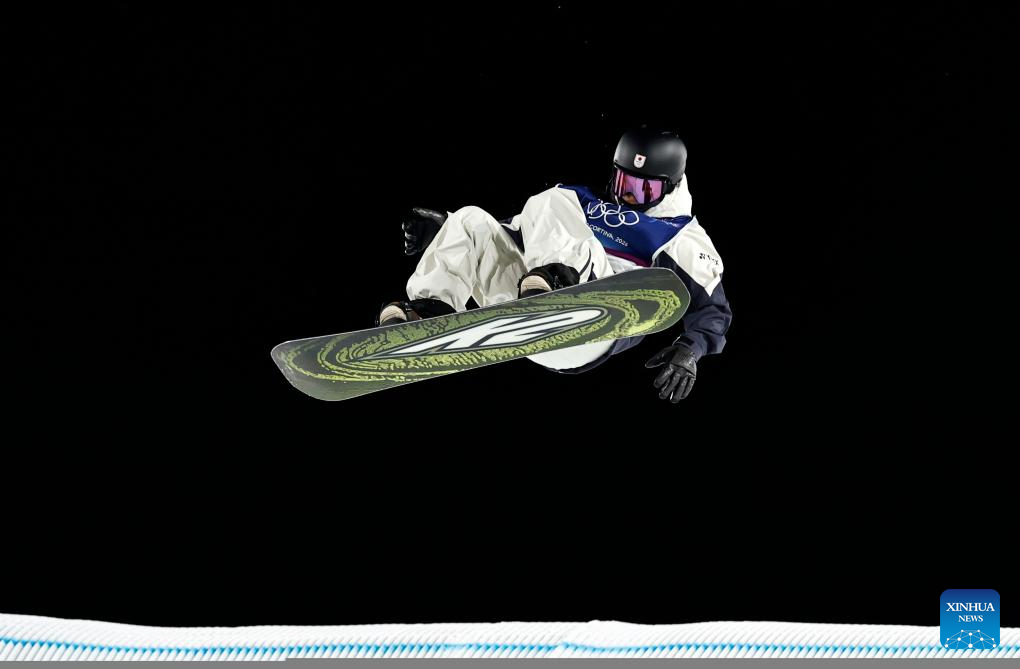 Kimata Ryoma of Japan competes during the Snowboard Men's Big Air qualification of the Milan-Cortina 2026 Olympic Winter Games in Livigno, Italy, Feb. 5, 2026. (Xinhua/Wang Peng)