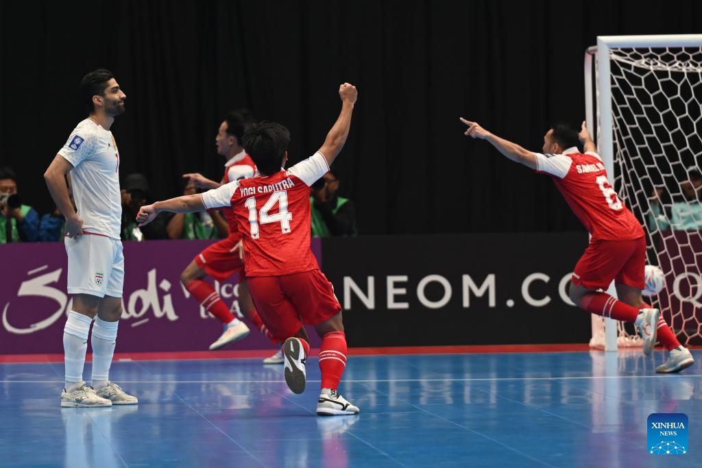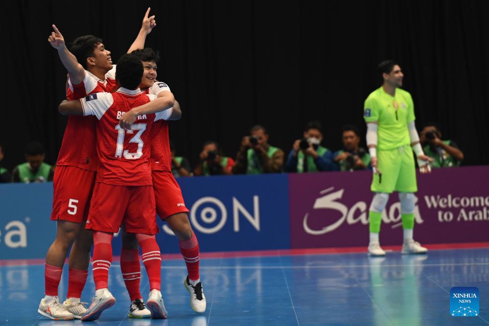 Players of Indonesia celebrate after scoring during the final match between Indonesia and Iran at the AFC Futsal Asian Cup 2026 in The Indonesia Arena stadium, Jakarta, Indonesia, Feb. 7, 2026. (Xinhua/Agung Kuncahya B.)