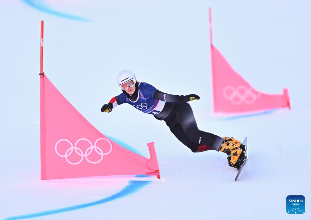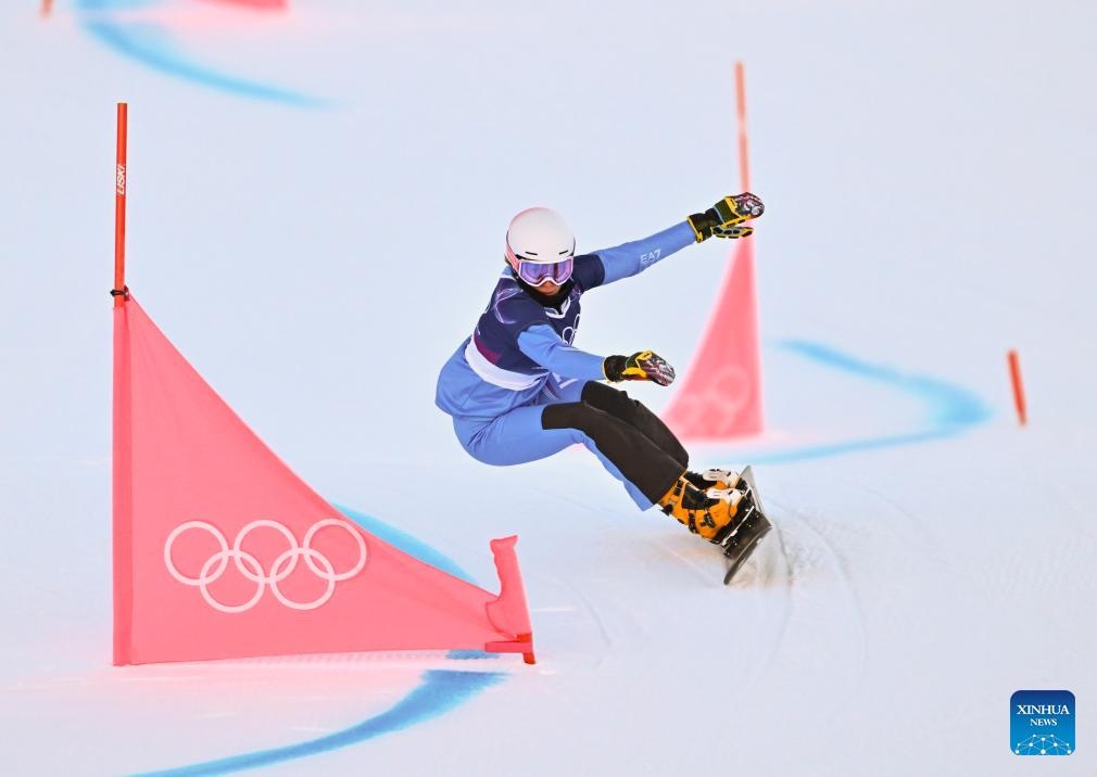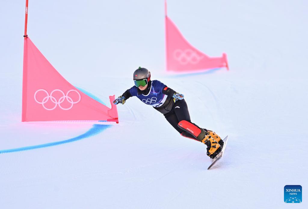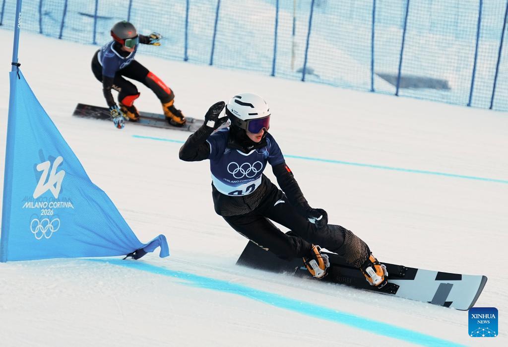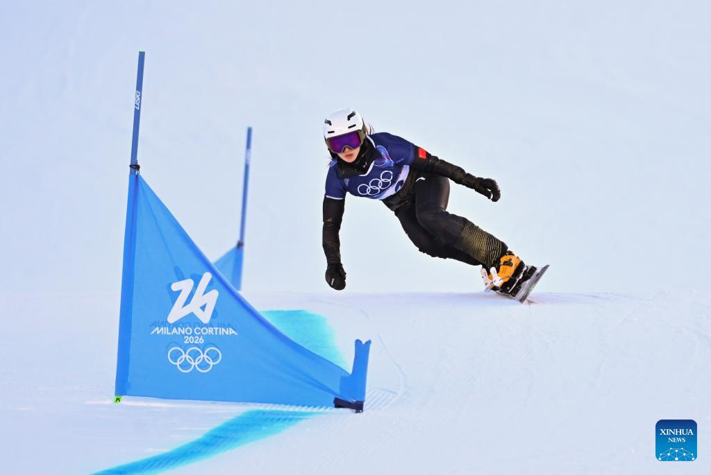 Gong Naiying of China competes during the Snowboard Women's Parallel Giant Slalom Qualification at the Milan-Cortina 2026 Olympic Winter Games in Livigno, Italy, Feb. 8, 2026. (Xinhua/Zhang Hongxiang)