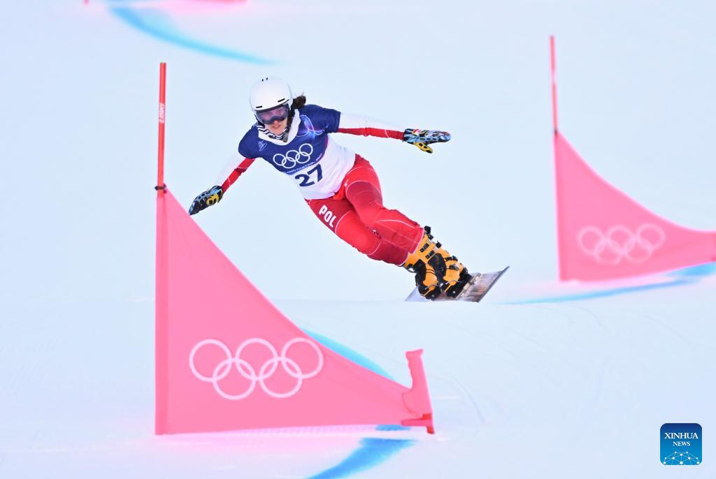 Aleksandra Krol-Walas of Poland competes during the Snowboard Women's Parallel Giant Slalom Qualification at the Milan-Cortina 2026 Olympic Winter Games in Livigno, Italy, Feb. 8, 2026. (Xinhua/Zhang Hongxiang)