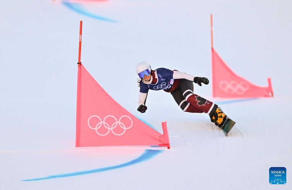 Kaylie Buck of Canada competes during the Snowboard Women's Parallel Giant Slalom Qualification at the Milan-Cortina 2026 Olympic Winter Games in Livigno, Italy, Feb. 8, 2026. (Xinhua/Zhang Hongxiang)