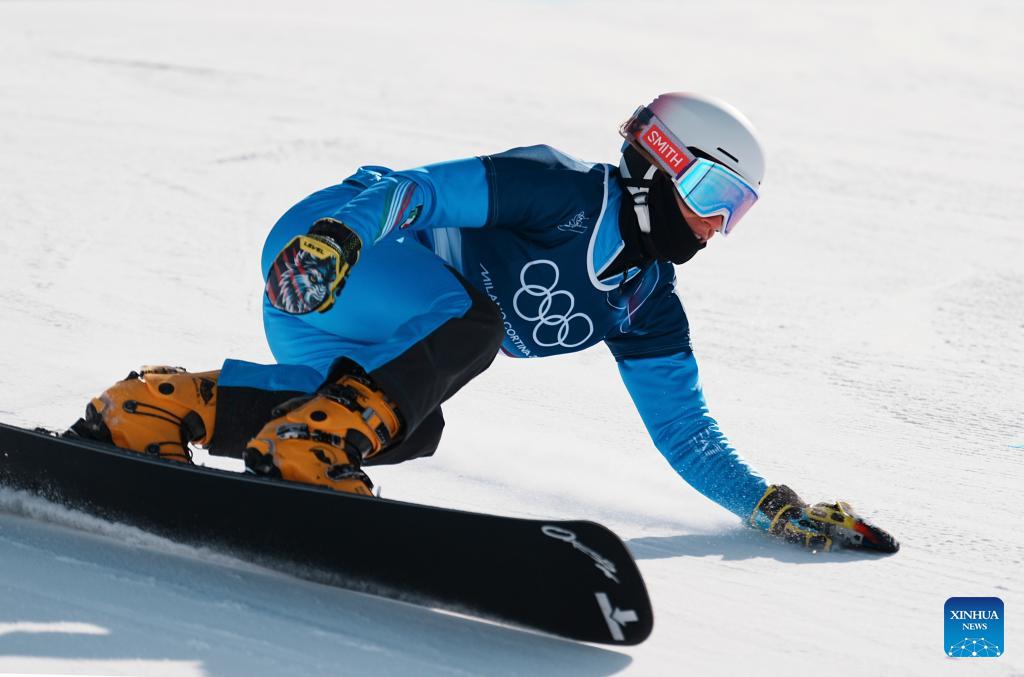Elisa Caffont of Italy competes during the Snowboard Women's Parallel Giant Slalom 1/8 Finals at the Milan-Cortina 2026 Olympic Winter Games in Livigno, Italy, Feb. 8, 2026. (Xinhua/Hu Chao)