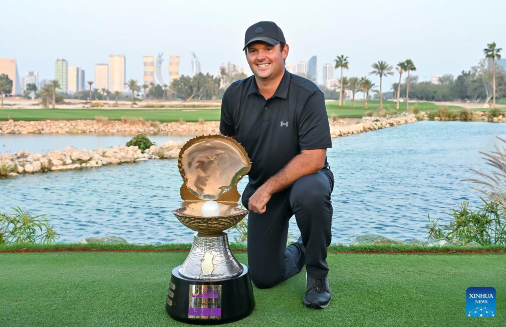 Patrick Reed of the United States poses with the trophy after winning the Qatar Masters 2026 golf tournament at the Doha Golf Club in Doha, Qatar, Feb. 8, 2026. (Photo by Nikku/Xinhua)