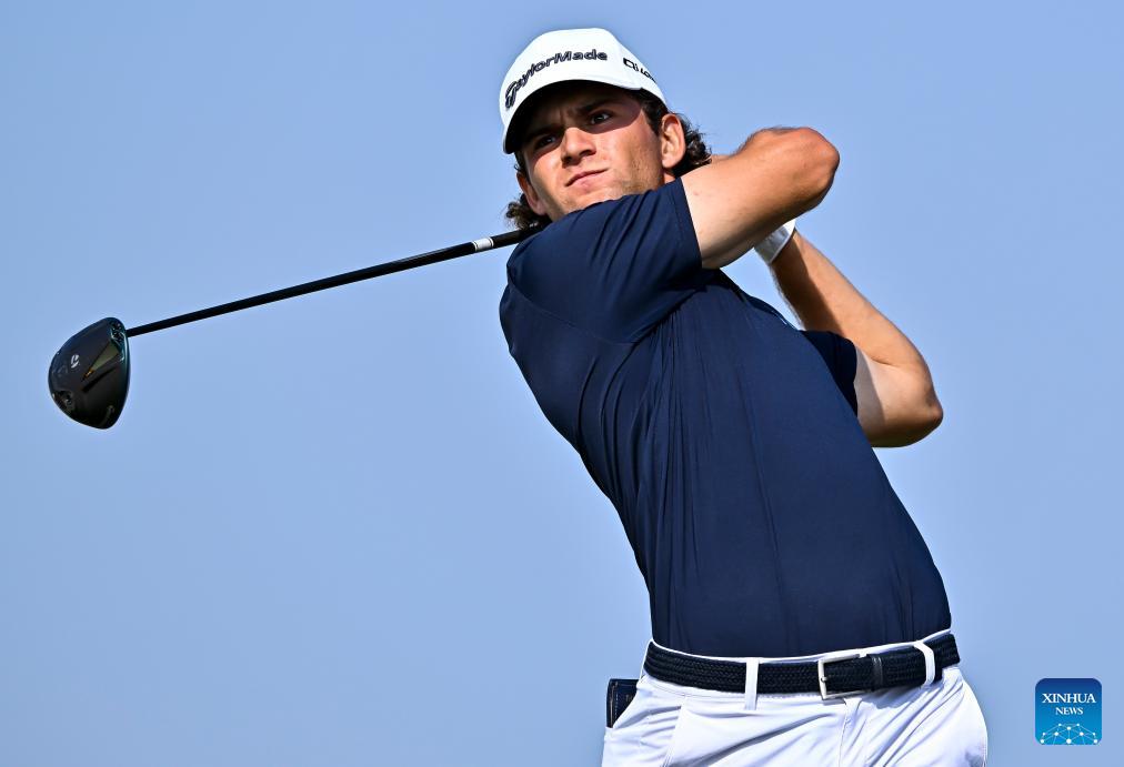 Angel Ayora of Spain hits his tee shot on the 11th hole during the final round of the Qatar Masters 2026 golf tournament at the Doha Golf Club in Doha, Qatar, Feb. 8, 2026. (Photo by Nikku/Xinhua)