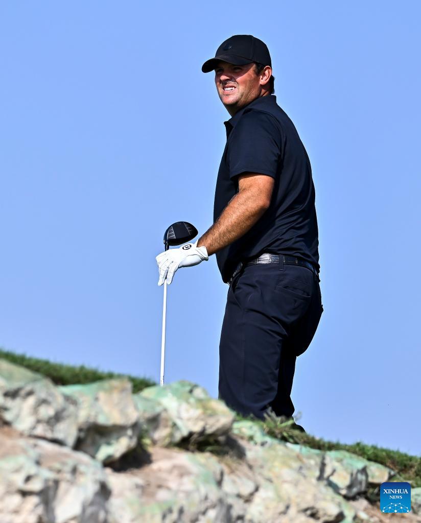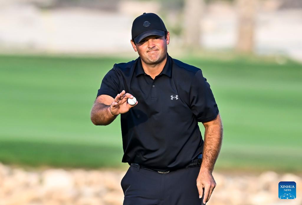 Patrick Reed of the United States reacts after his tee shot on the 11th hole during the final round of the Qatar Masters 2026 golf tournament at the Doha Golf Club in Doha, Qatar, Feb. 8, 2026. (Photo by Nikku/Xinhua)