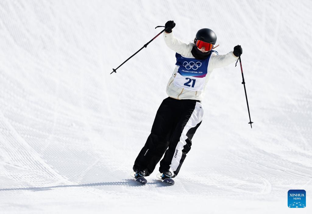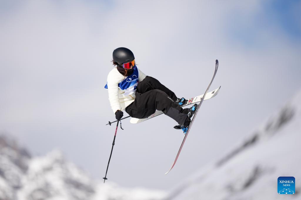 Liu Mengting of China competes during the freestyle skiing women's freeski slopestyle final at the Milan-Cortina 2026 Olympic Winter Games in Livigno, Italy, Feb. 9, 2026. (Xinhua/Wu Huiwo)