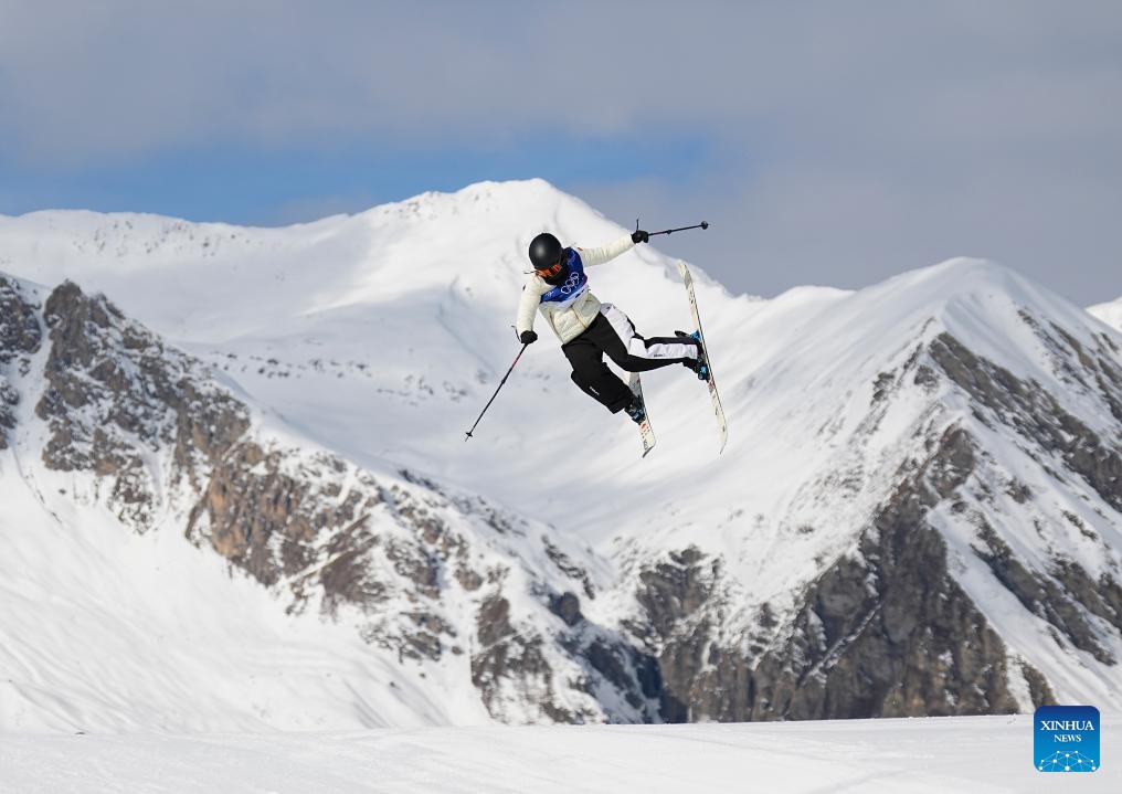 Liu Mengting of China competes during the freestyle skiing women's freeski slopestyle final at the Milan-Cortina 2026 Olympic Winter Games in Livigno, Italy, Feb. 9, 2026. (Xinhua/Hu Chao)