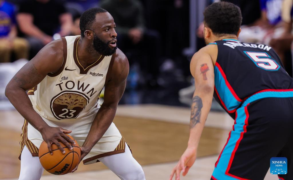 Draymond Green (L) of Golden State Warriors vies with Kyle Anderson of Memphis Grizzlies during the 2025-2026 NBA regular season basketball game between Golden State Warriors and Memphis Grizzlies in San Francisco, the United States, Feb. 9, 2026. (Photo by Arthur Dong/Xinhua)