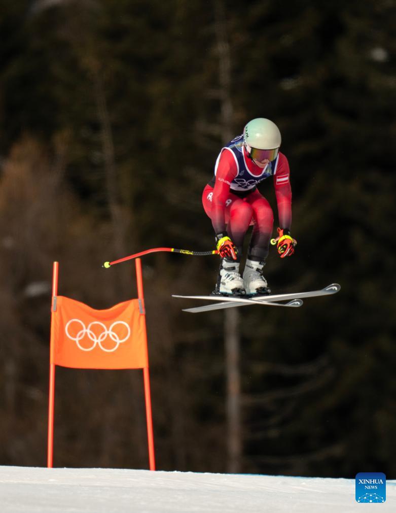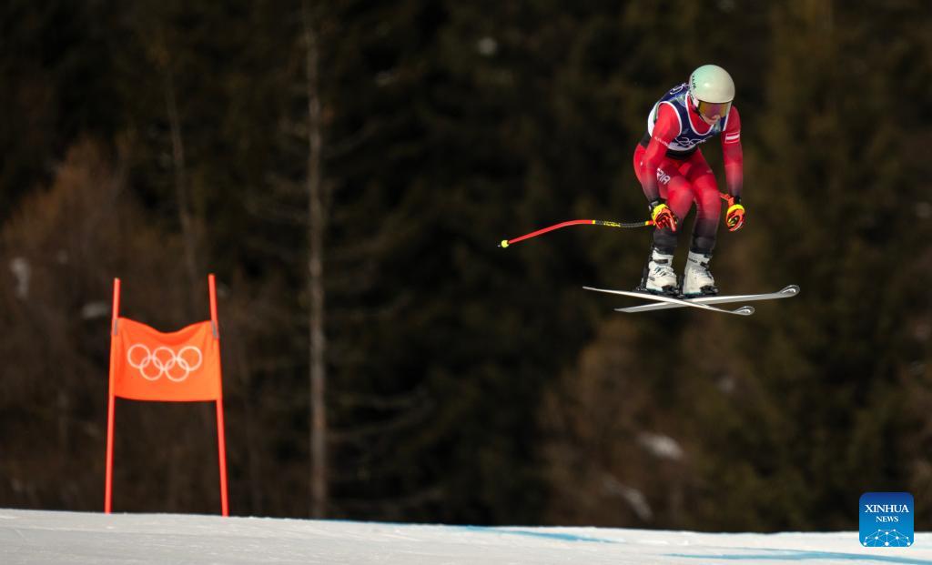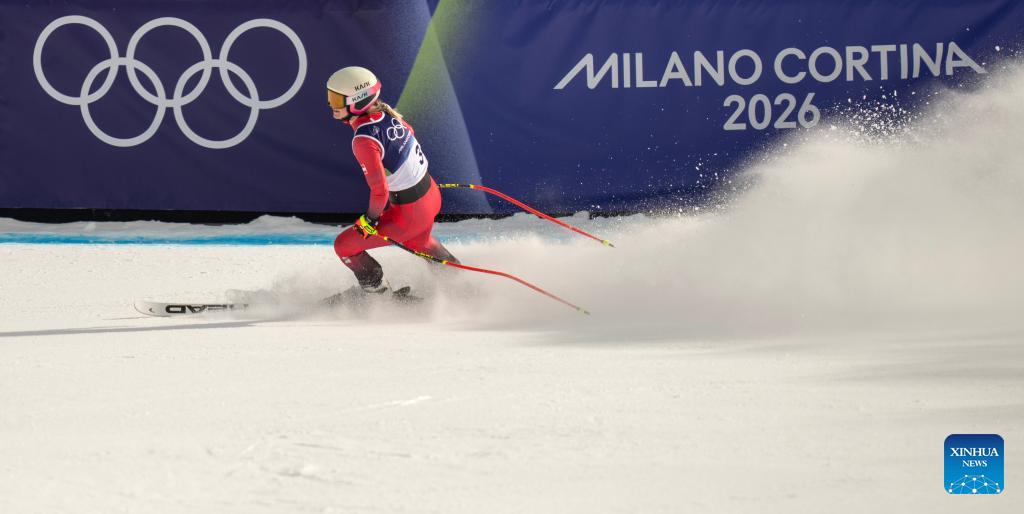Ariane Raedler of Austria competes during the downhill race of the alpine skiing women's team combined at the Milan-Cortina 2026 Olympic Winter Games in Cortina, Italy, Feb. 10, 2026. (Xinhua/Fei Maohua)