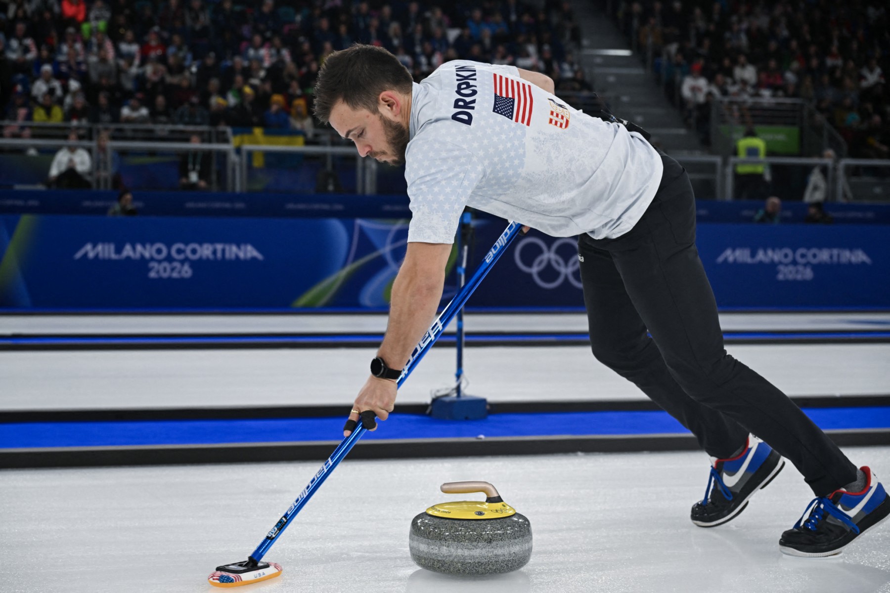 USA's Korey Dropkin competes in the curling mixed doubles round robin gold medal game between Sweden and USA during the Milano Cortina 2026 Winter Olympic Games at the Cortina Curling Olympic Stadium in Cortina d’Ampezzo on February 10, 2026. (Photo: AFP)