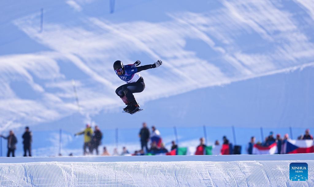 Lucas Eguibar Breton of Spain competes during the snowboard men's cross seeding run at the Milan-Cortina 2026 Olympic Winter Games in Livigno, Italy, Feb. 12, 2026. (Xinhua/Wu Huiwo)
