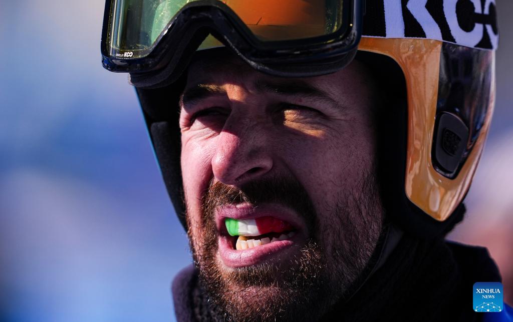 Lorenzo Sommariva of Italy is seen during the snowboard men's cross seeding run at the Milan-Cortina 2026 Olympic Winter Games in Livigno, Italy, Feb. 12, 2026. (Xinhua/Wu Huiwo)