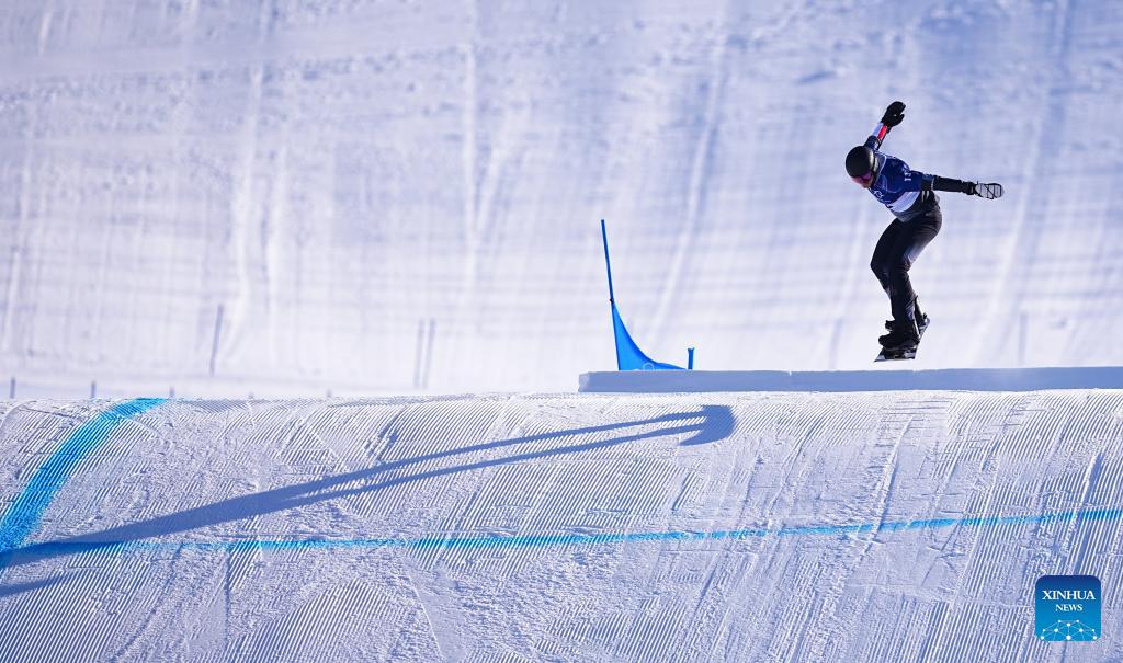 David Pickl of Austria competes during the snowboard men's cross seeding run at the Milan-Cortina 2026 Olympic Winter Games in Livigno, Italy, Feb. 12, 2026. (Xinhua/Wu Huiwo)