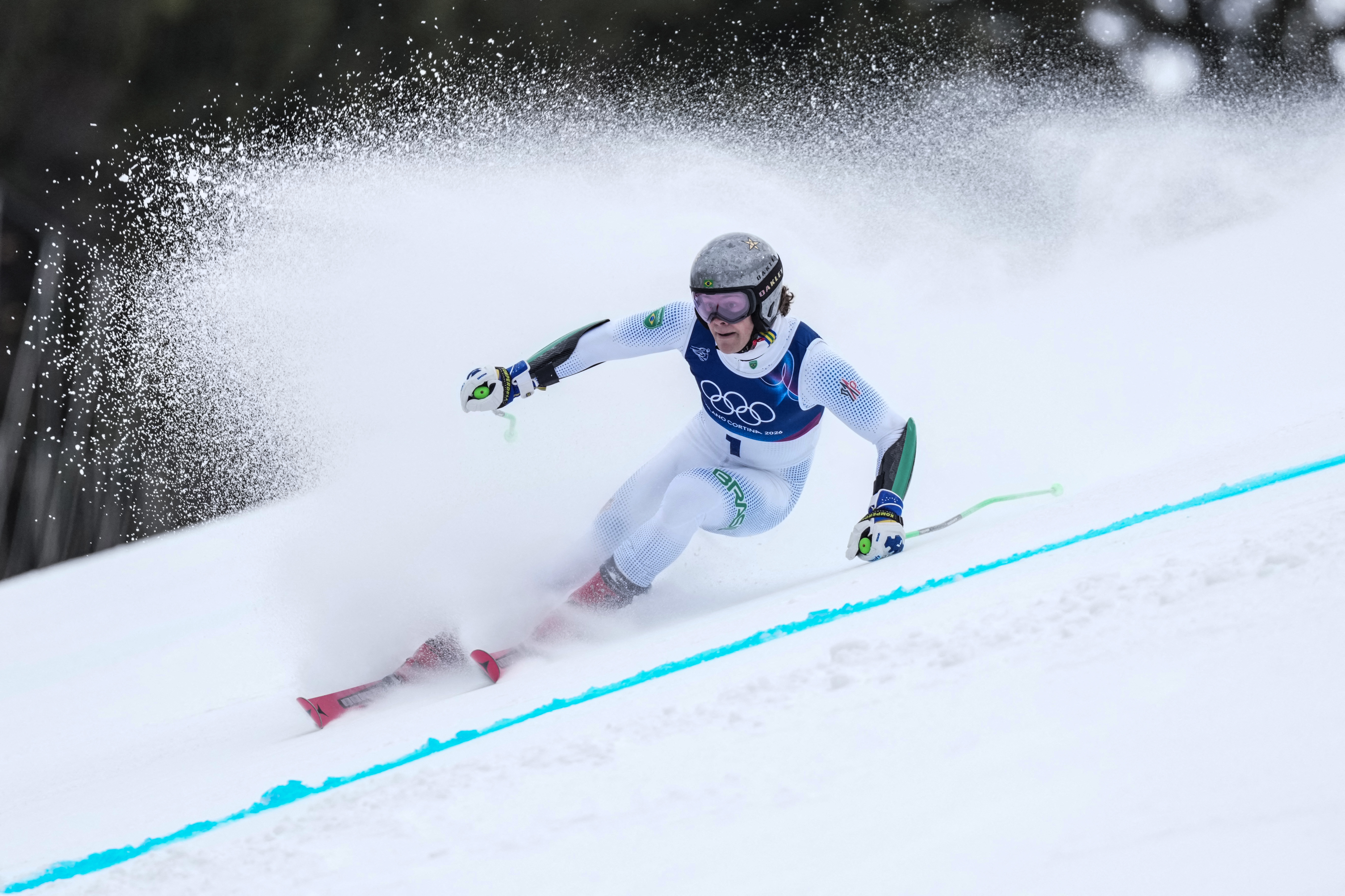 Brazil's Lucas Pinheiro Braathen competes in the first run of the men's giant slalom alpine skiing event during the Milano Cortina 2026 Winter Olympic Games at the Stelvio Ski Centre in Bormio (Valtellina) on February 14, 2026. (Photo: AFP)