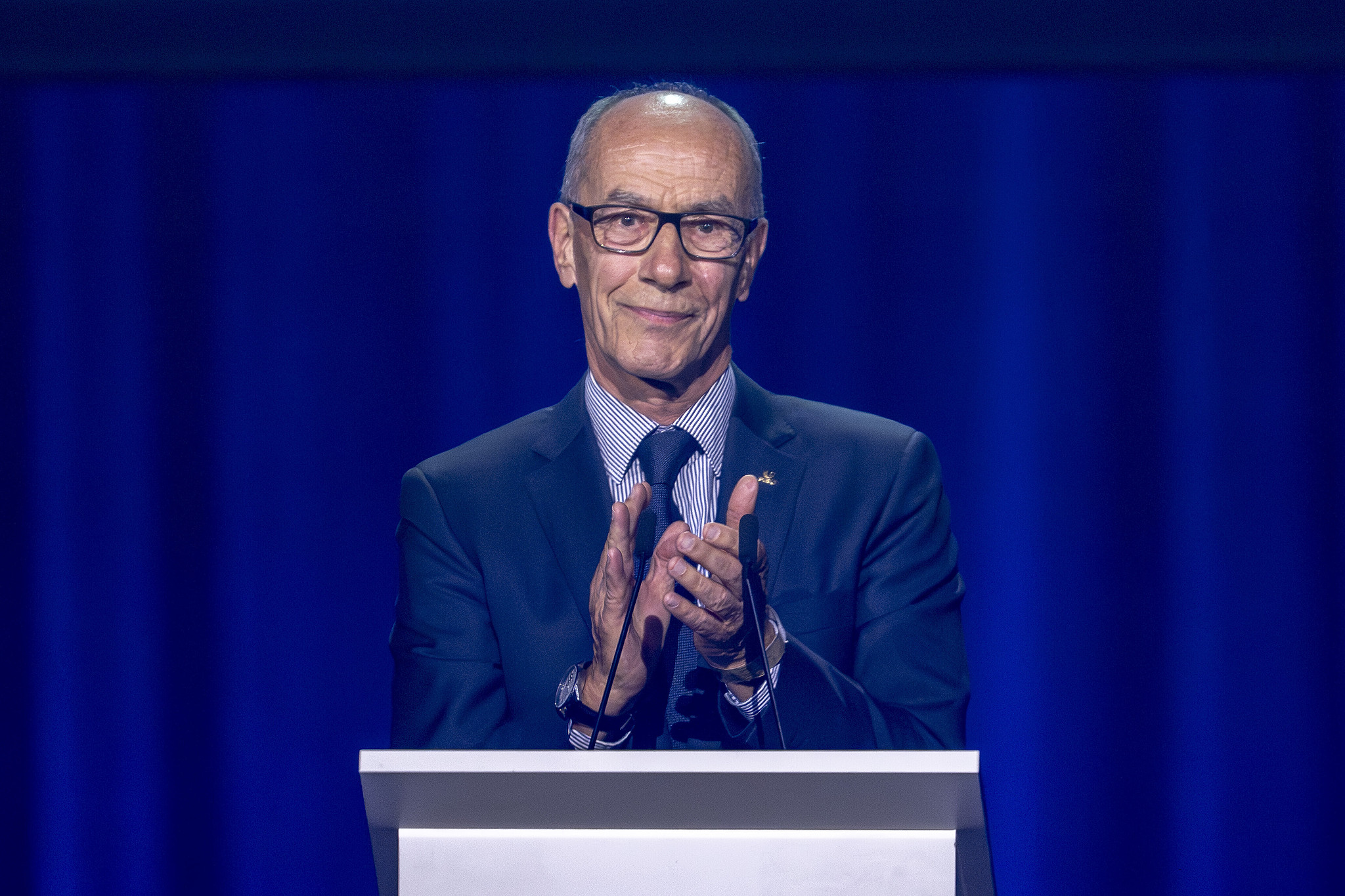 Leonz Eder, President of the International University Sports Federation, attends the closing ceremony of the 2025 FISU World University Games in North Rhine-Westphalia, Germany, July 25, 2025. /VCG
