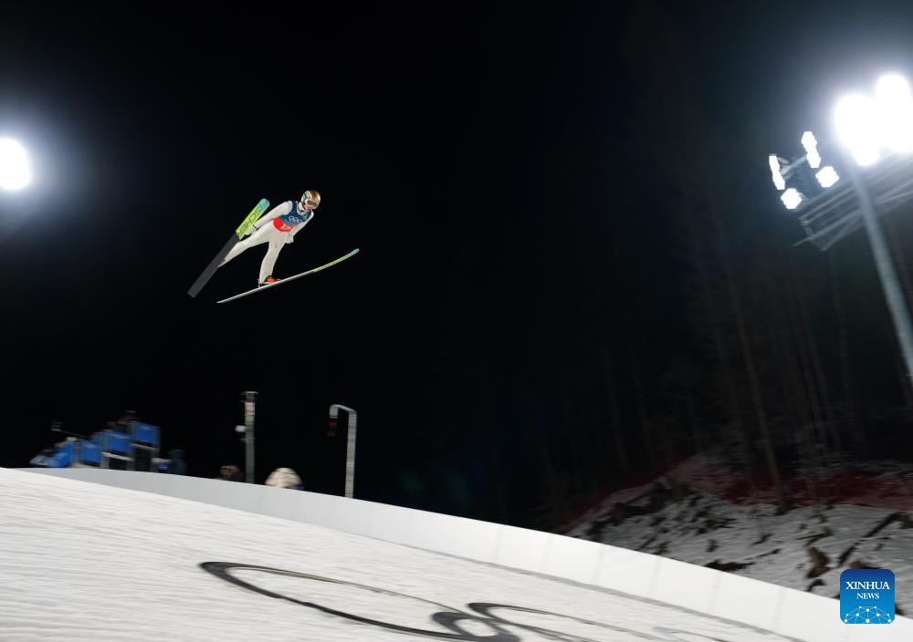 PREDAZZO, Italy, Feb. 16 (Xinhua) -- Austria's Jan Hoerl and Stephan Embacher delivered a commanding performance on the large hill to win the first-ever men's ski jumping super team gold at the Milan-Cortina Winter Olympics on Monday.