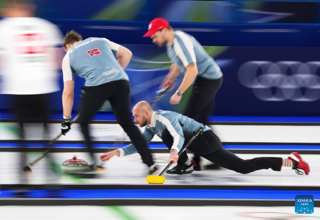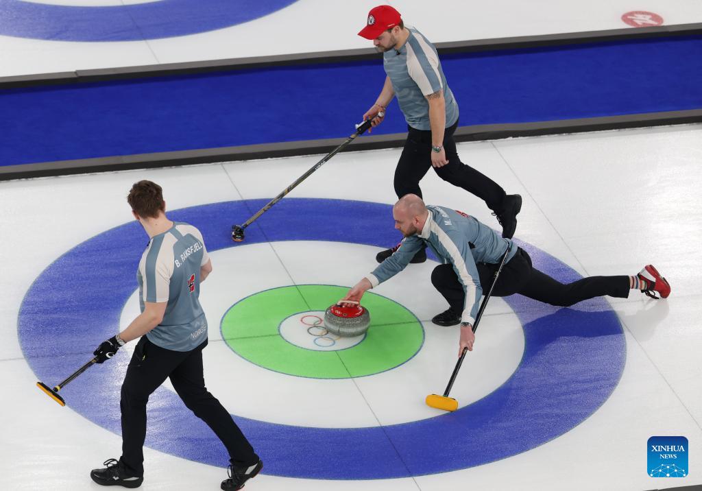 CORTINA D'AMPEZZO, Italy, Feb. 20 (Xinhua) -- Switzerland swept Norway 9-1 to claim the bronze medal in the men's curling competition at the Milan-Cortina Winter Olympics on Friday.