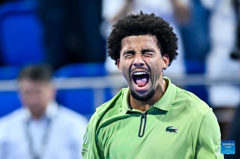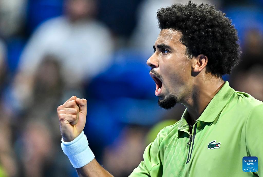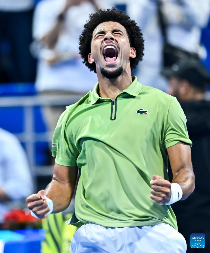 Arthur Fils celebrates after winning the men's singles semi-final match between Jakub Mensik of the Czech Republic and Arthur Fils of France at the ATP Qatar Open 2026 tennis tournament in Doha, Qatar, on Feb. 20, 2026. (Photo by Nikku/Xinhua)