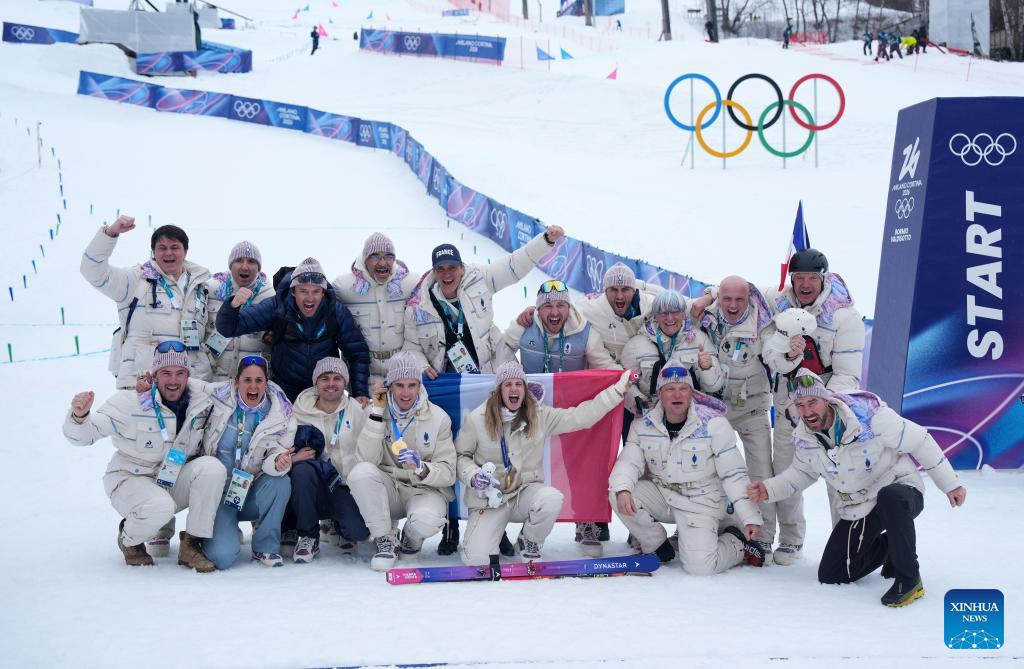 BORMIO, Italy, Feb. 21 (Xinhua) -- France's Emily Harrop and Thibault Anselmet powered to mixed relay gold on Saturday, bringing the curtain down on ski mountaineering's Olympic debut at the Milan-Cortina Winter Games.