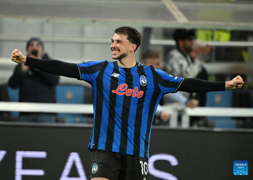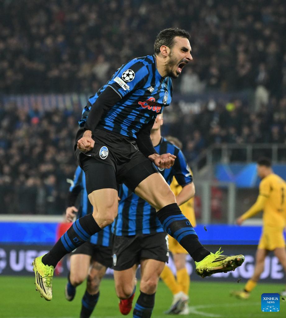 Atalanta's Lazar Samardzic celebrates his goal during the UEFA Champions League play-off 2nd leg match between Atalanta and Borussia Dortmund in Bergamo, Italy, Feb. 25, 2026. (Photo by Alberto Lingria/Xinhua)