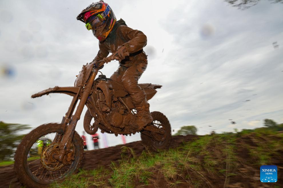 A motorcyclist participates in a motocross race in Nairobi, Kenya on Feb. 28, 2026. (Xinhua/Yang Guang)