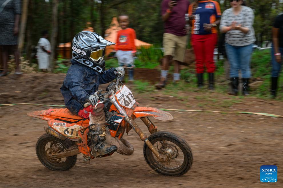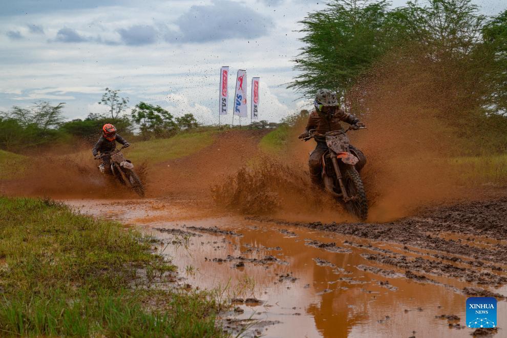 Motorcyclists participate in a motocross race in Nairobi, Kenya on Feb. 28, 2026. (Xinhua/Yang Guang)