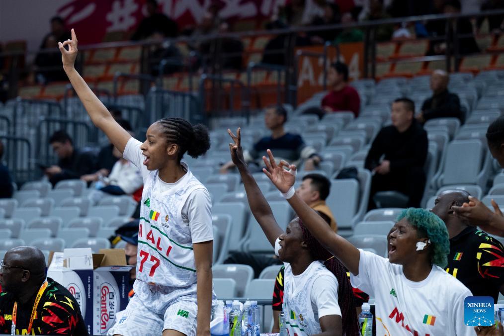 Players of Mali celebrate during the group A match between the Czech Republic and Mali at FIBA Women's World Cup Qualifying Tournaments in Wuhan, central China's Hubei Province, Feb. 12, 2026. (Xinhua/Wu Zhizun)