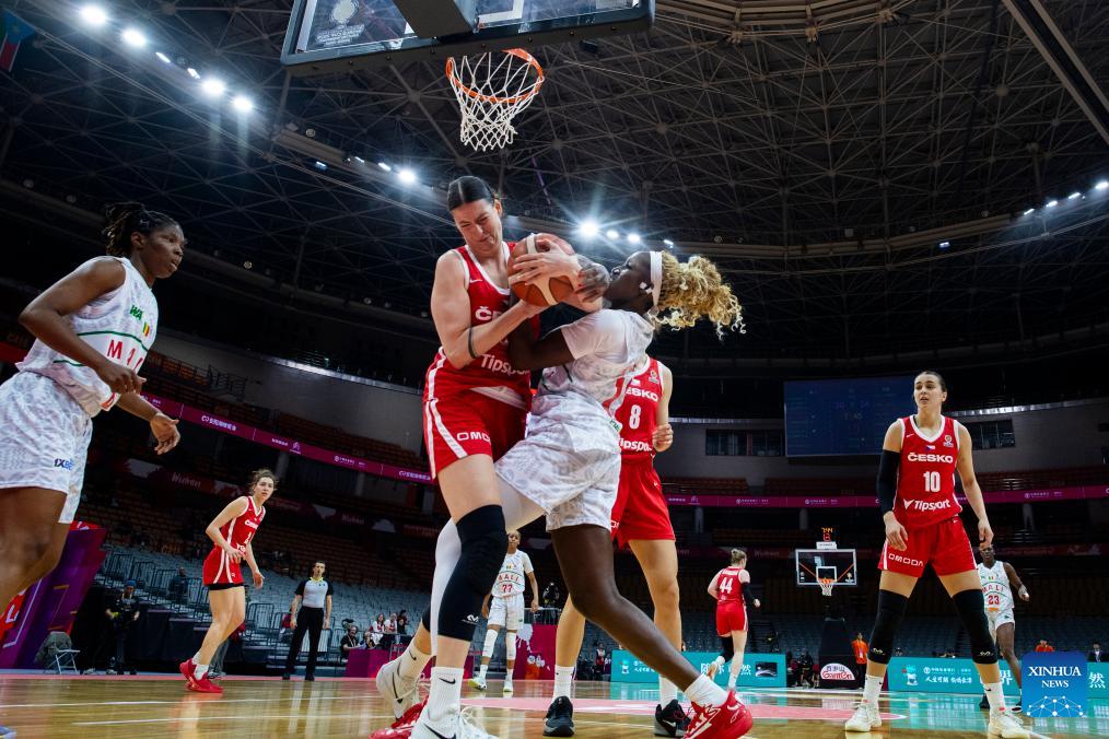 Maimouna Haidara (3rd L) of Mali vies with Natalie Stoupalova (2nd L) of the Czech Republic during the group A match between the Czech Republic and Mali at FIBA Women's World Cup Qualifying Tournaments in Wuhan, central China's Hubei Province, Feb. 12, 2026. (Xinhua/Wu Zhizun)