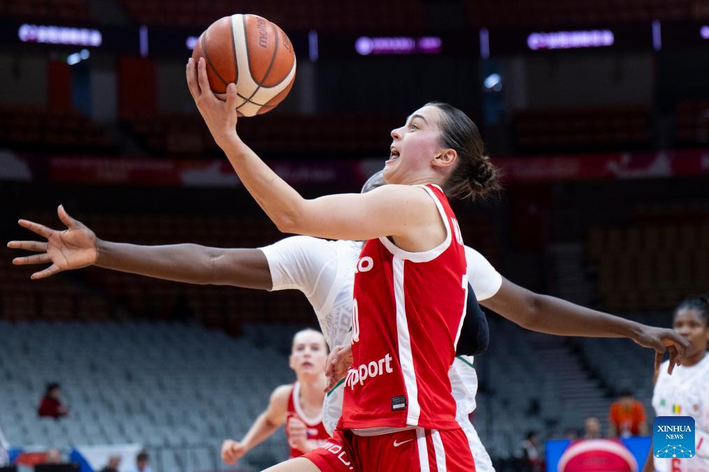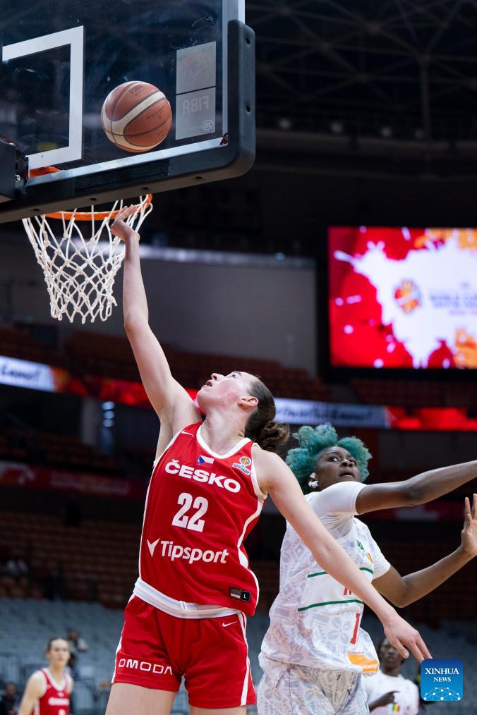 Emma Cechova (L) of the Czech Republic goes for a lay-up during the group A match between the Czech Republic and Mali at FIBA Women's World Cup Qualifying Tournaments in Wuhan, central China's Hubei Province, Feb. 12, 2026. (Xinhua/Wu Zhizun)
