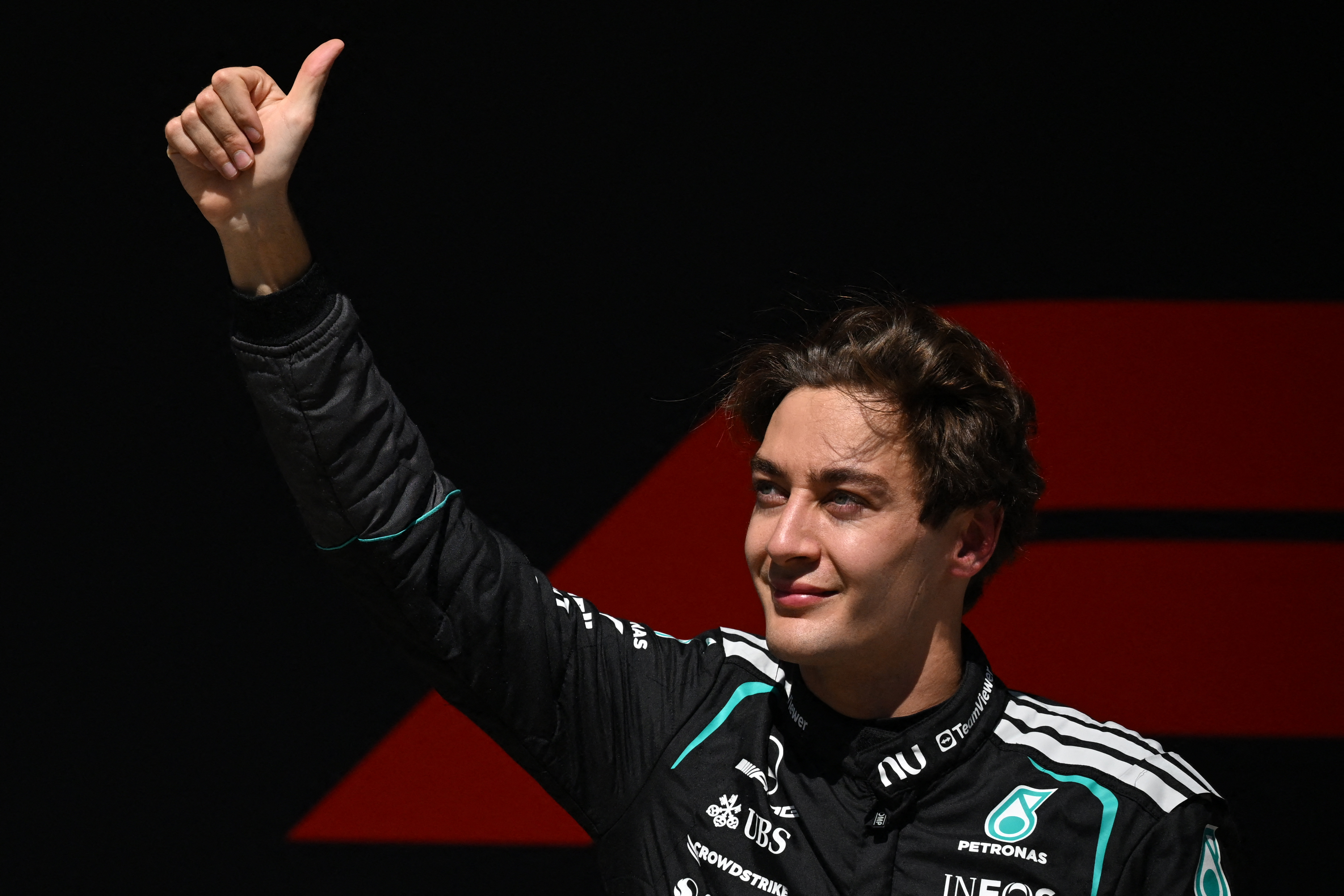 Mercedes' British driver George Russell celebrates winning the sprint race ahead of the Formula One Chinese Grand Prix at the Shanghai International Circuit in Shanghai on March 14, 2026. (Photo: AFP)
