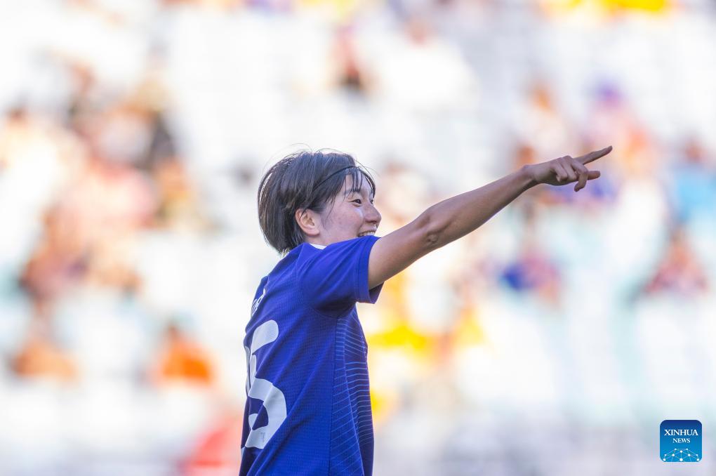 Remina Chiba of Japan celebrates a score during the quarterfinal of Women's Asian Cup between Japan and Philippines in Sydney, Australia, March 15, 2026. (Photo by Hu Jingchen/Xinhua)