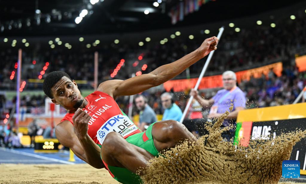 Gerson Balde of Portugal competes during the men's long jump final at the 2026 World Athletics Indoor Championships in Torun, Poland, March 22, 2026. (Xinhua/Zhang Haofu)