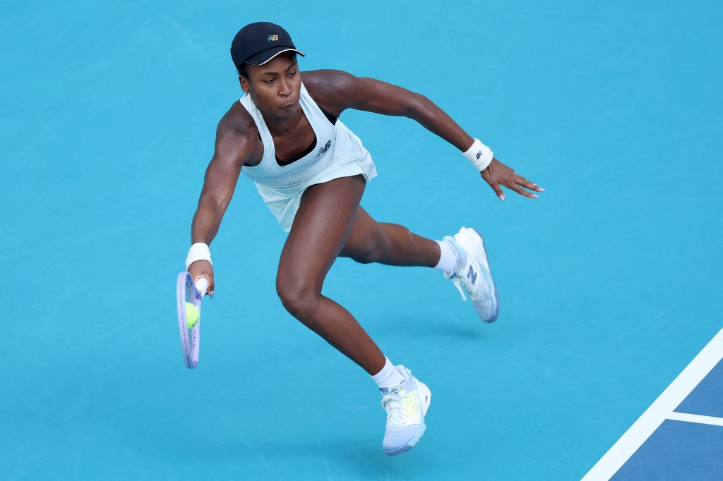 Coco Gauff of the United States returns a shot to Karolina Muchova of Czechia during the Women's Singles Semiinals on Day 10 of the Miami Open Presented by Itau at Hard Rock Stadium on March 26, 2026 in Miami Gardens, Florida. (Photo: AFP)