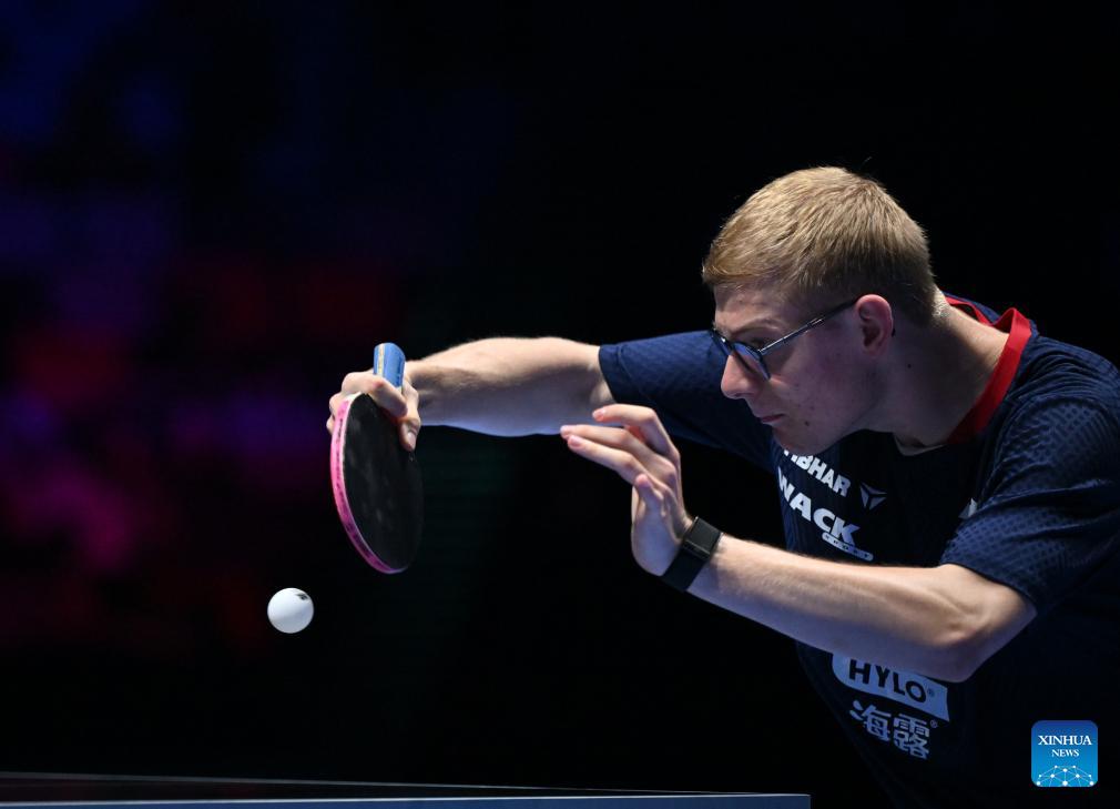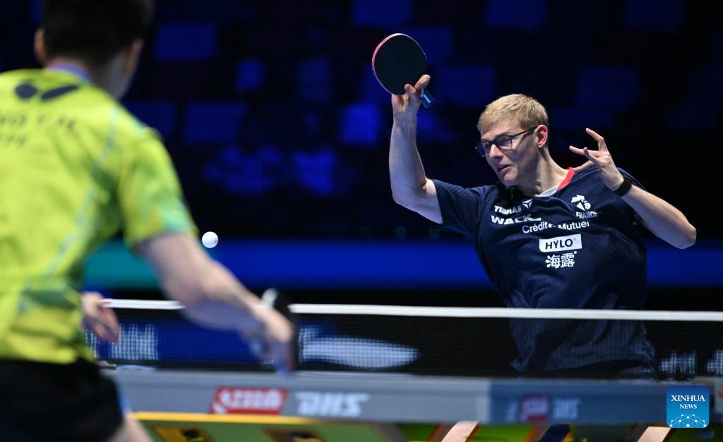 Felix Lebrun of France competes during the men's singles group 7 match between Felix Lebrun of France and Feng Yi-hsin of Chinese Taipei at the ITTF Men's and Women's World Cup 2026 in Macao, China, March 31, 2026. (Xinhua/Yu Yang)