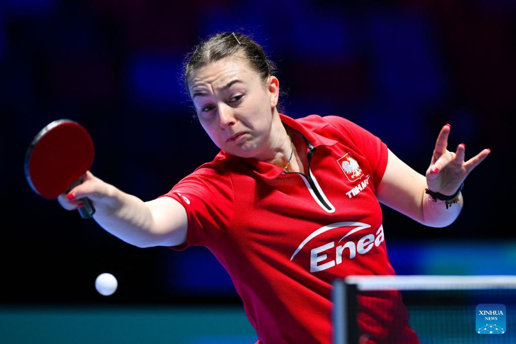 Natalia Bajor of Poland competes during the women's singles group 6 match between Doo Hoi Kem of China's Hong Kong and Natalia Bajor of Poland at the ITTF Men's and Women's World Cup 2026 in Macao, China, March 31, 2026. (Xinhua/Cheong Kam Ka)