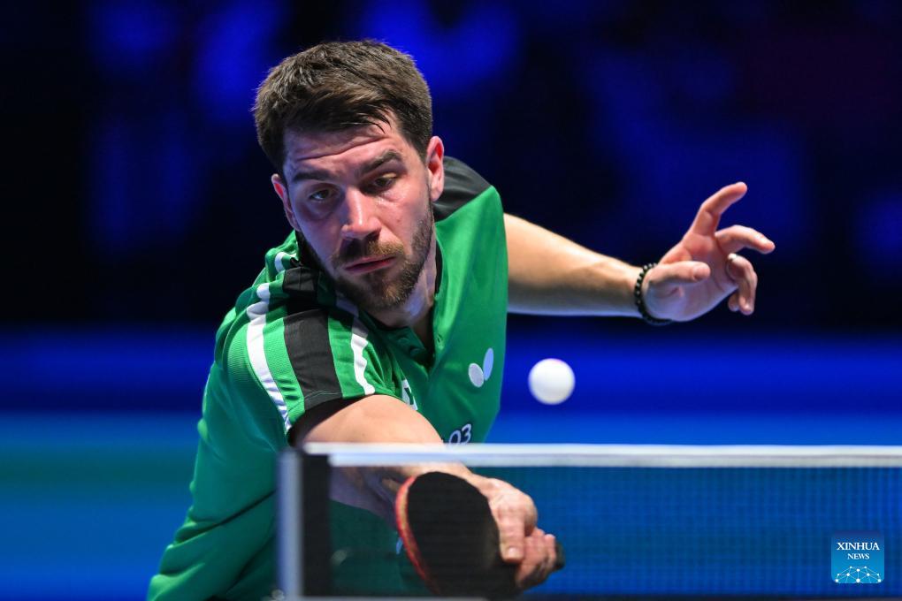 Patrick Franziska competes during the men's singles round of 16 match between Truls Moregard of Sweden and Patrick Franziska of Germany at the ITTF Men's and Women's World Cup 2026 in Macao, China, April 2, 2026. (Xinhua/Cheong Kam Ka)