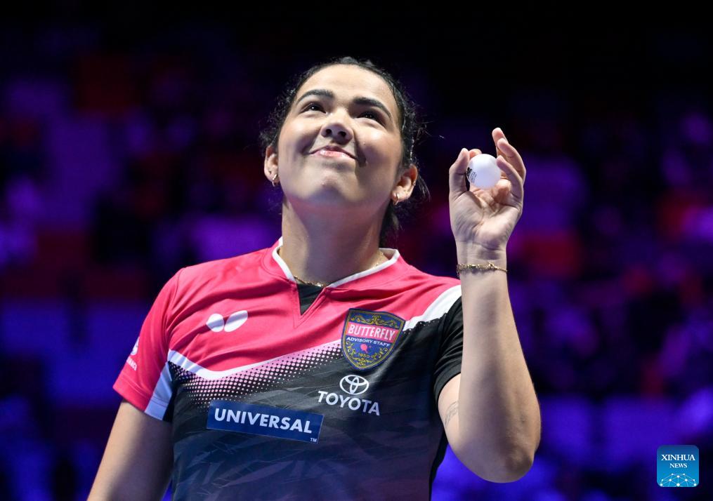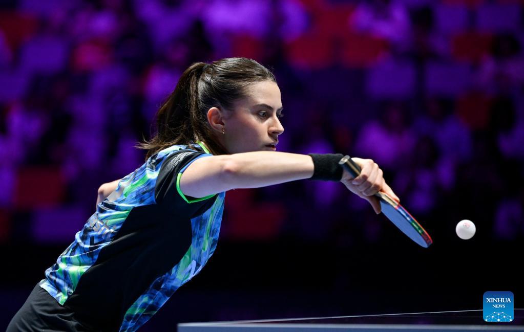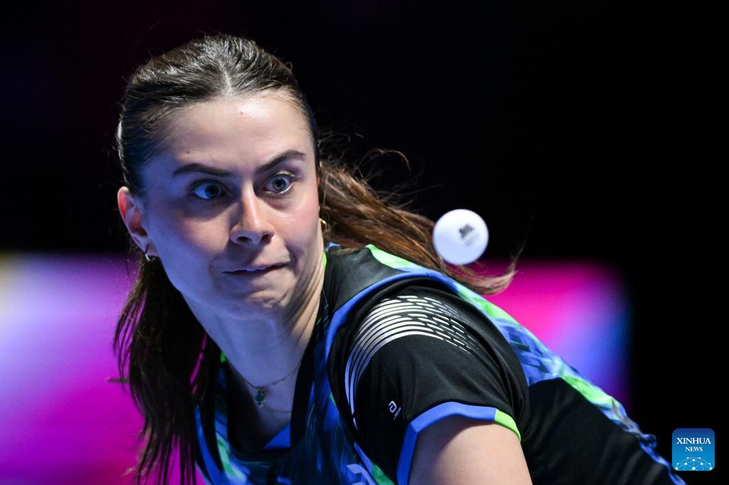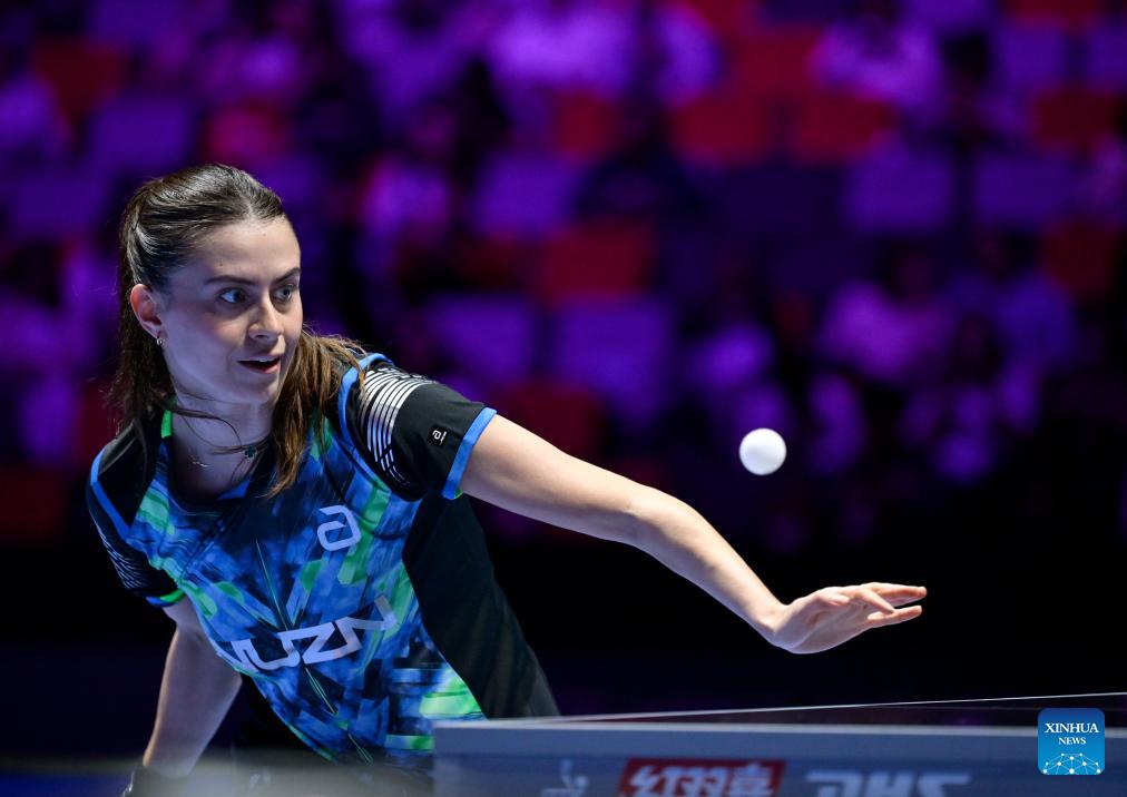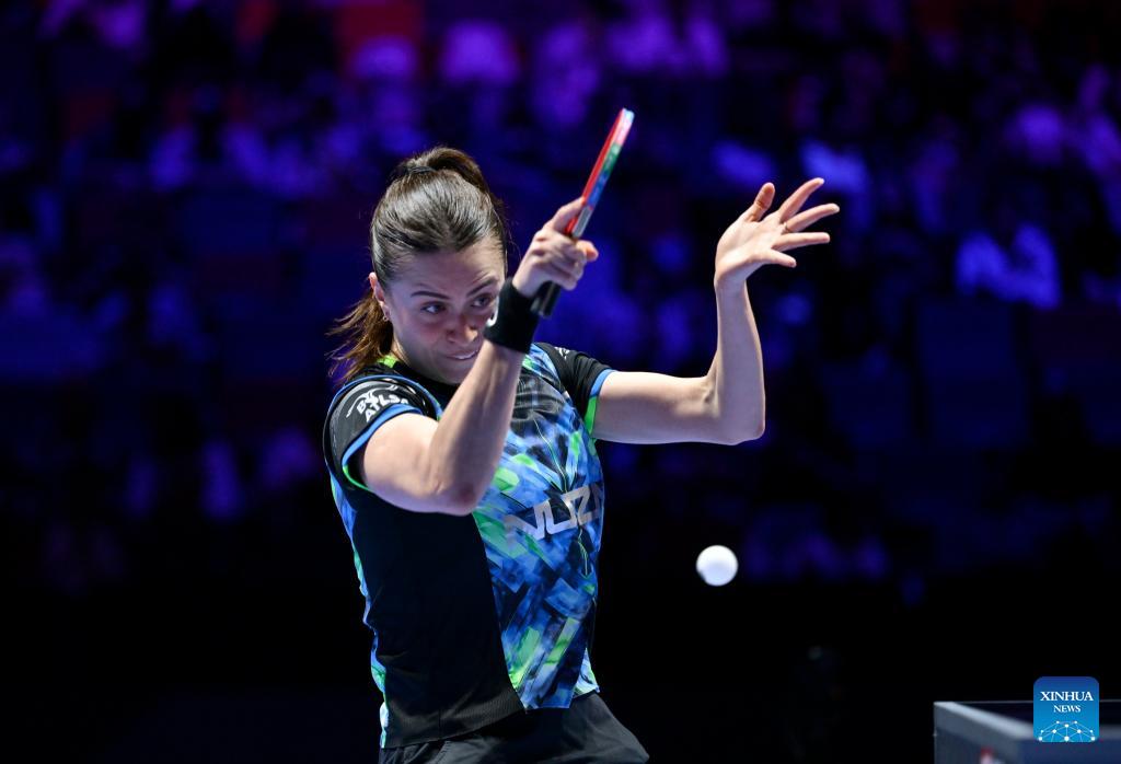 Hana Goda competes during the women's singles round of 16 match between Hana Goda of Egypt and Yuan Jia Nan of France at the ITTF Men's and Women's World Cup 2026 in Macao, China, April 3, 2026. (Xinhua/Cheong Kam Ka)