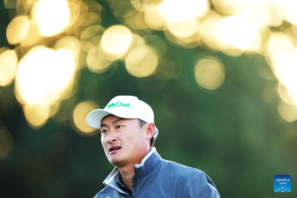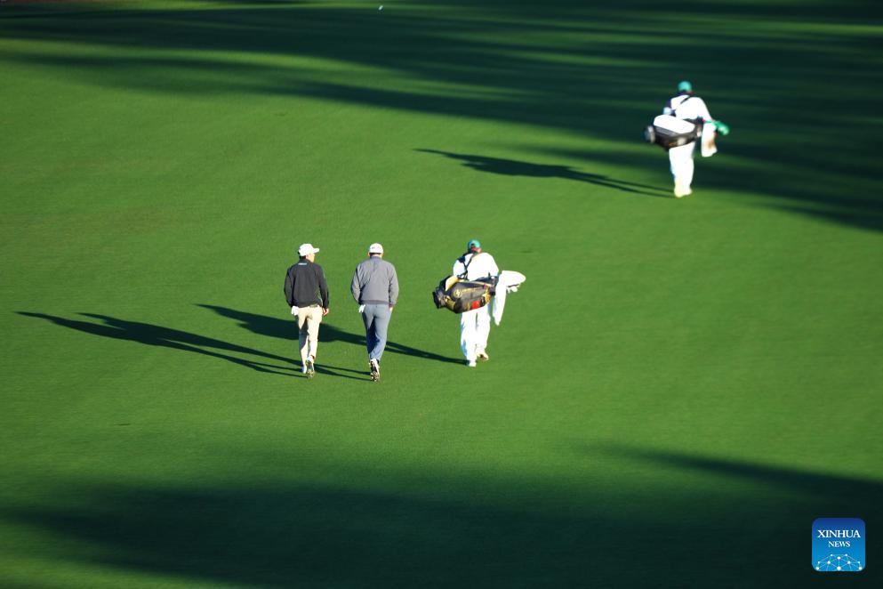 Li Haotong (1st L) of China is seen during the 2026 Masters golf tournament at Augusta National Golf Club, in Augusta, the United States, on April 9, 2026. (Xinhua/Wu Xiaoling)