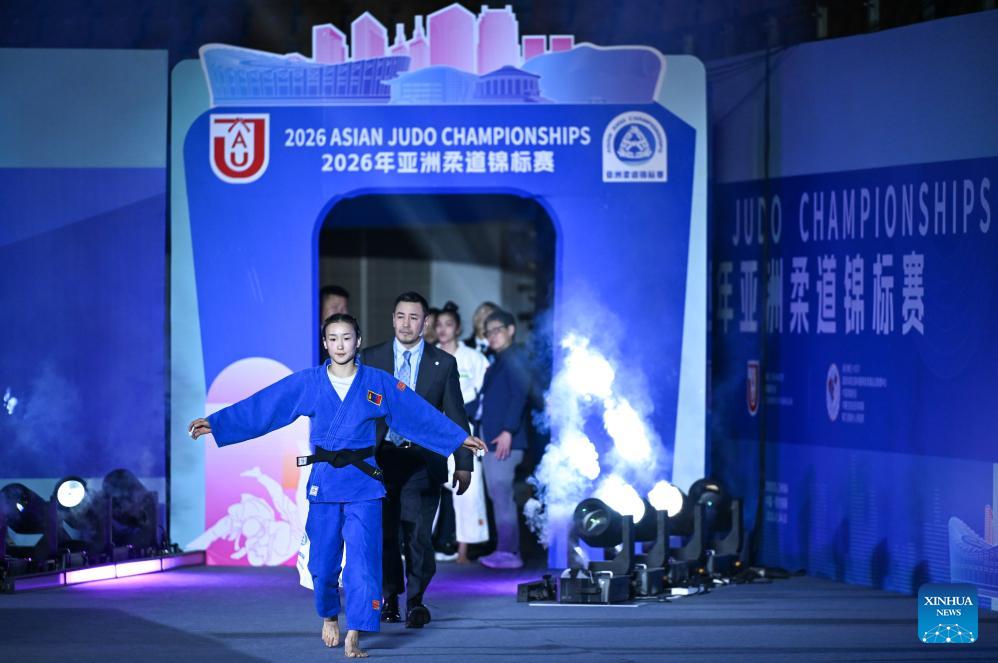 Photo taken on April 16, 2026 shows the opening ceremony of 2026 Asian Judo Championships in Erdos, north China's Inner Mongolia Autonomous Region. (Xinhua/Bei He)
